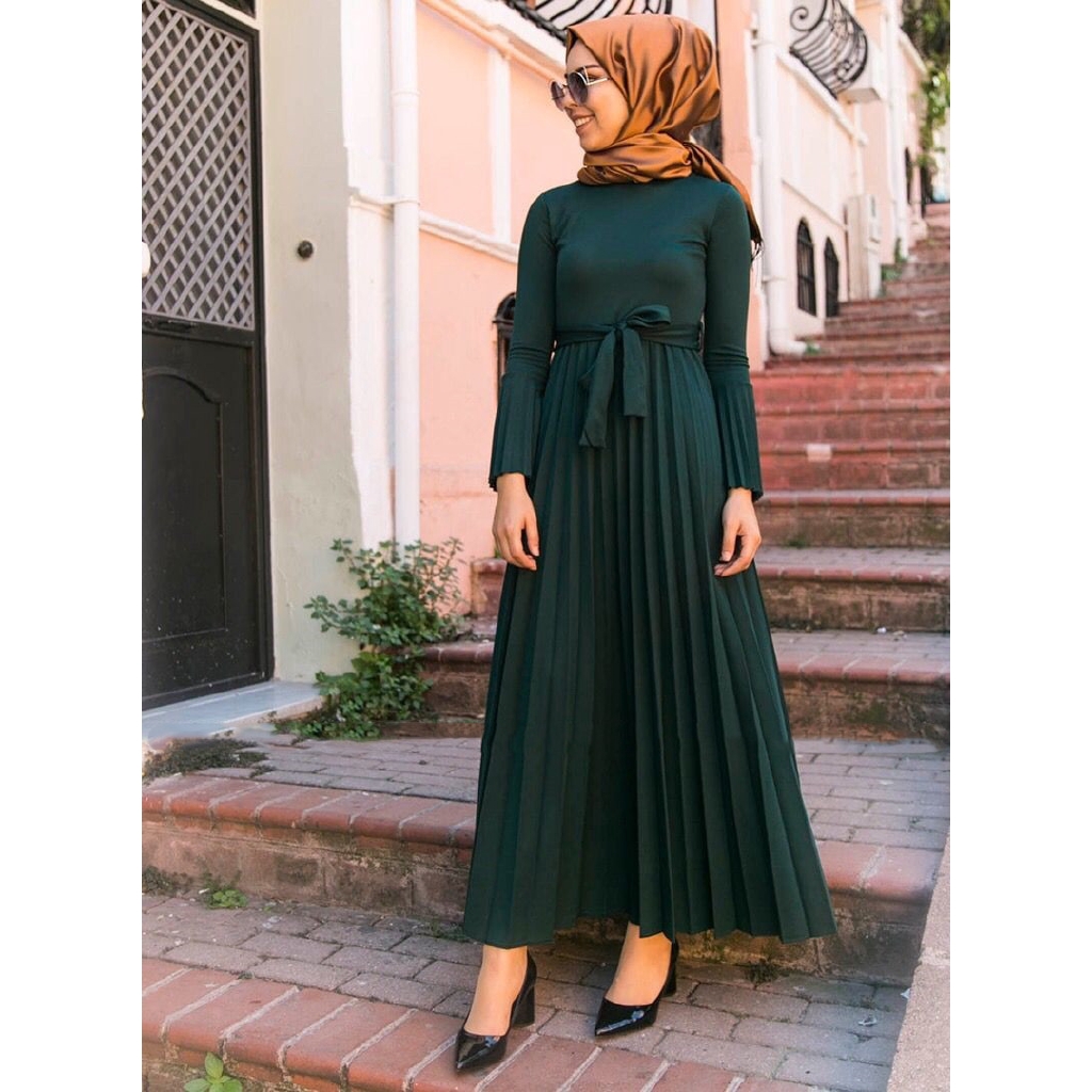 Muslimah moden pleated ironless jubah long dress.